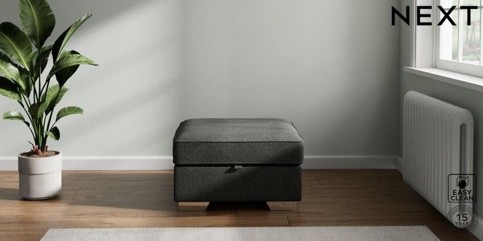 7.2.10 Stamford Highback Storage Footstool Tweedy Blend Easy Clean Charcoal Grey Square Angle - Chrome Metal | Made Click here to use our website with more accessibility support, for example screen readers