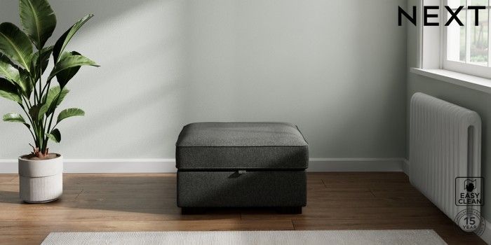 7.2.10 Stamford Highback Storage Footstool Tweedy Blend Easy Clean Charcoal Grey Square Angle - Dark | Made Click here to use our website with more accessibility support, for example screen readers