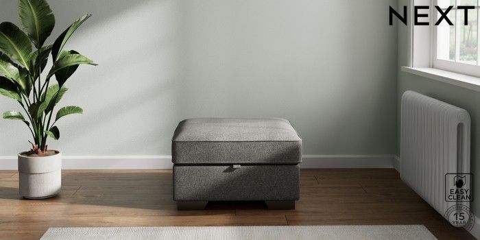 7.2.10 Stamford Highback Storage Footstool Tweedy Blend Easy Clean Dark Grey Square Angle - Gunmetal | Made Click here to use our website with more accessibility support, for example screen readers