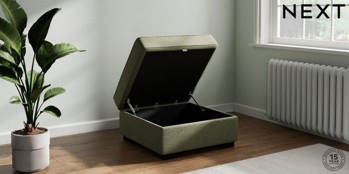 7.2.10 Stamford Highback Storage Footstool Tweedy Chenille Mid Moss Green Square Angle - Dark | Made Click here to use our website with more accessibility support, for example screen readers