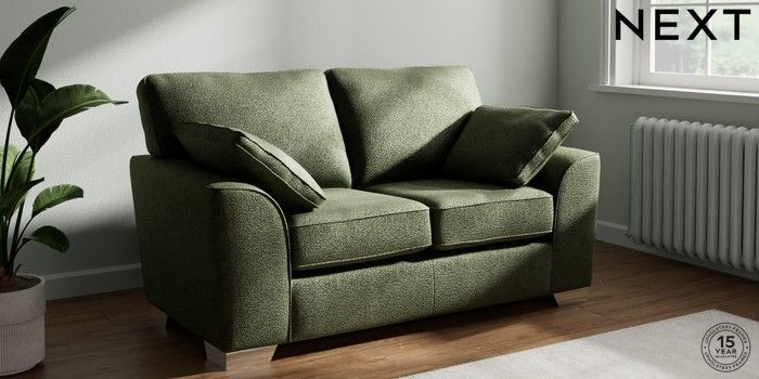 7.2.10 Stamford 2 Seater Small Sofa Boucle Chenille Dark Moss Green Large Square Angle - Chrome Metal | Made Click here to use our website with more accessibility support, for example screen readers