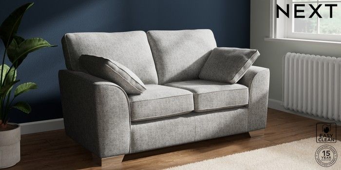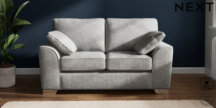 7.2.10 Stamford 2 Seater Small Sofa Chunky Boucle Easy Clean Light Grey Large Square Angle - Chrome Metal | Made Click here to use our website with more accessibility support, for example screen readers