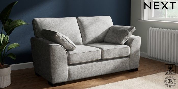 7.2.10 Stamford 2 Seater Small Sofa Chunky Boucle Easy Clean Light Grey Large Square Angle - Dark | Made Click here to use our website with more accessibility support, for example screen readers