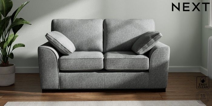 7.2.10 Stamford 2 Seater Small Sofa Chunky Boucle Easy Clean Mid Grey Large Square Angle - Dark | Made Click here to use our website with more accessibility support, for example screen readers