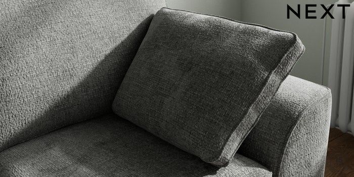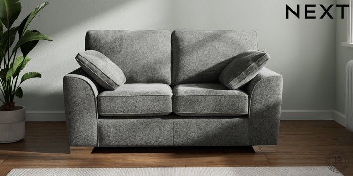 7.2.10 Stamford 2 Seater Small Sofa Chunky Chenille Dark Grey Large Square Angle - Chrome Metal | Made Click here to use our website with more accessibility support, for example screen readers