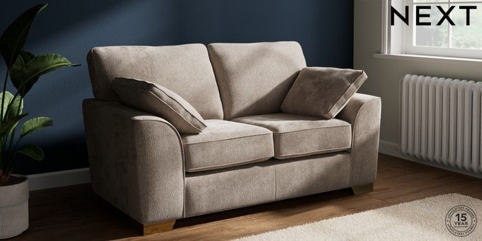 7.2.10 Stamford 2 Seater Small Sofa Chunky Chenille Light Dove Large Square Angle - Brushed Brass | Made Click here to use our website with more accessibility support, for example screen readers
