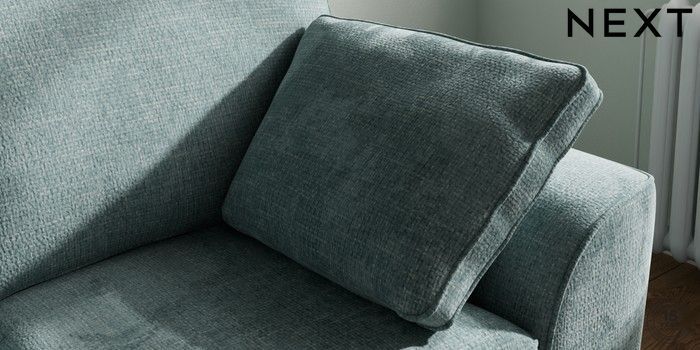 7.2.10 Stamford 2 Seater Small Sofa Chunky Chenille Light Teal Green Large Square Angle - Chrome Metal | Made Click here to use our website with more accessibility support, for example screen readers