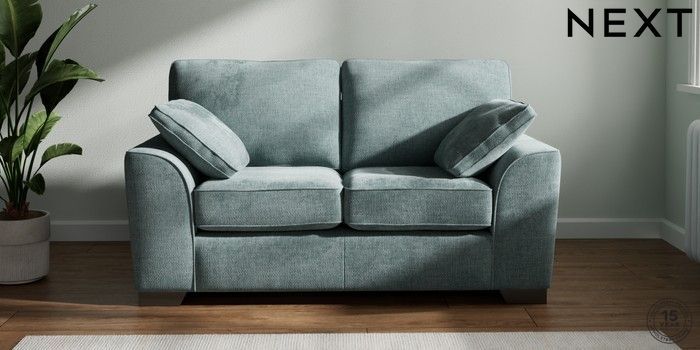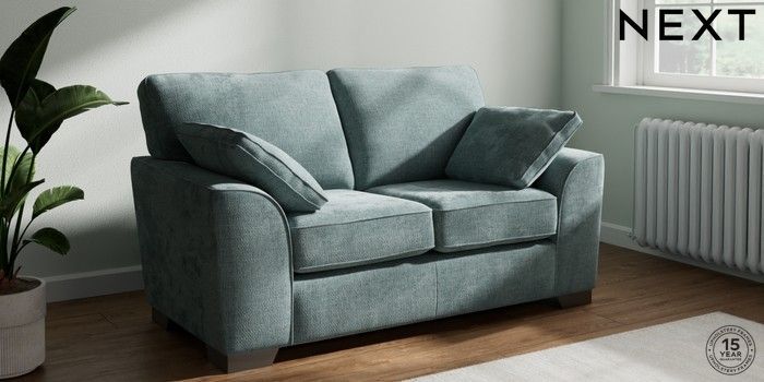 7.2.10 Stamford 2 Seater Small Sofa Chunky Chenille Light Teal Green Large Square Angle - Gunmetal | Made Click here to use our website with more accessibility support, for example screen readers