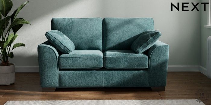 7.2.10 Stamford 2 Seater Small Sofa Chunky Chenille Mid Teal Green Large Square Angle - Gunmetal | Made Click here to use our website with more accessibility support, for example screen readers