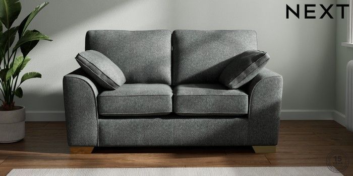 7.2.10 Stamford 2 Seater Small Sofa Cotswold Chenille Dark Grey Large Square Angle - Brushed Brass | Made Click here to use our website with more accessibility support, for example screen readers