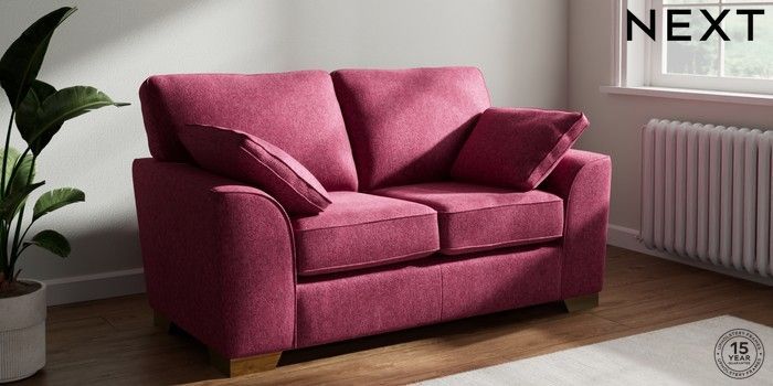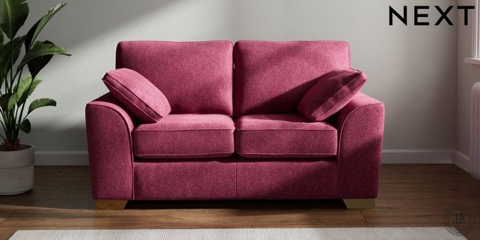 7.2.10 Stamford 2 Seater Small Sofa Cotswold Chenille Dark Raspberry Pink Large Square Angle - Brushed Brass | Made Click here to use our website with more accessibility support, for example screen readers
