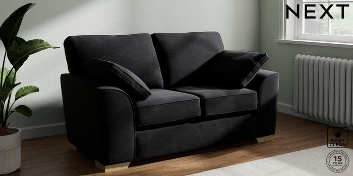 7.2.10 Stamford 2 Seater Small Sofa Fine Chenille Easy Clean Black Large Square Angle - Light | Made Click here to use our website with more accessibility support, for example screen readers