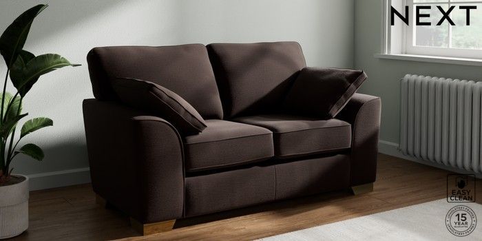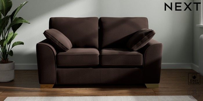 7.2.10 Stamford 2 Seater Small Sofa Fine Chenille Easy Clean Chocolate Brown Large Square Angle - Brushed Brass | Made Click here to use our website with more accessibility support, for example screen readers