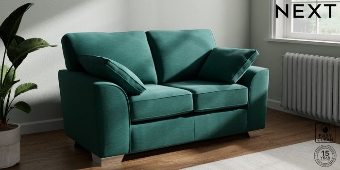 7.2.10 Stamford 2 Seater Small Sofa Fine Chenille Easy Clean Dark Juniper Green Large Square Angle - Chrome Metal | Made Click here to use our website with more accessibility support, for example screen readers