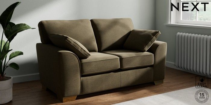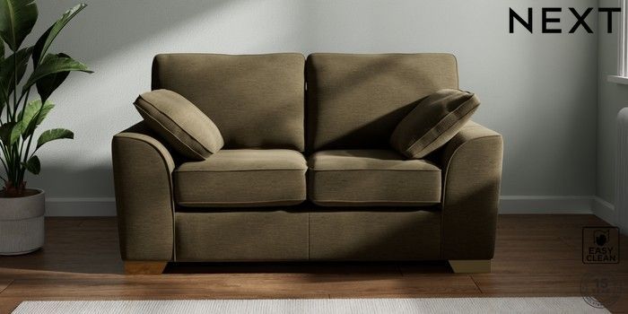 7.2.10 Stamford 2 Seater Small Sofa Fine Chenille Easy Clean Dark Moss Green Large Square Angle - Brushed Brass | Made Click here to use our website with more accessibility support, for example screen readers