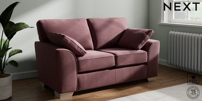 7.2.10 Stamford 2 Seater Small Sofa Fine Chenille Easy Clean Mid Mulberry Purple Large Square Angle - Chrome Metal | Made Click here to use our website with more accessibility support, for example screen readers