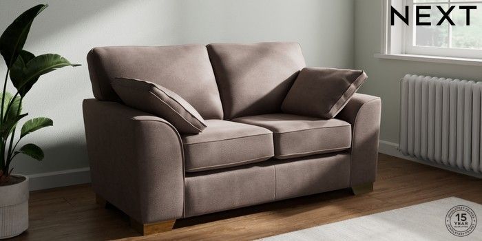 7.2.10 Stamford 2 Seater Small Sofa Luxe Chenille Mink Brown Large Square Angle - Brushed Brass | Made Click here to use our website with more accessibility support, for example screen readers