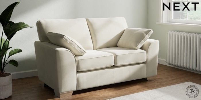7.2.10 Stamford 2 Seater Small Sofa Luxe Chenille Oyster Large Square Angle - Chrome Metal | Made Click here to use our website with more accessibility support, for example screen readers