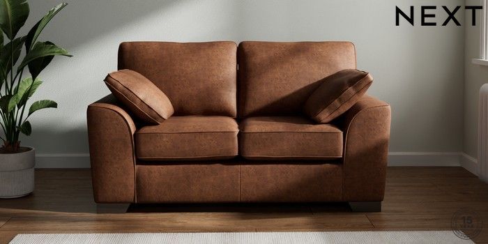 7.2.10 Stamford 2 Seater Small Sofa Monza Faux Leather Easy Clean Chestnut Brown Large Square Angle - Gunmetal | Made Click here to use our website with more accessibility support, for example screen readers