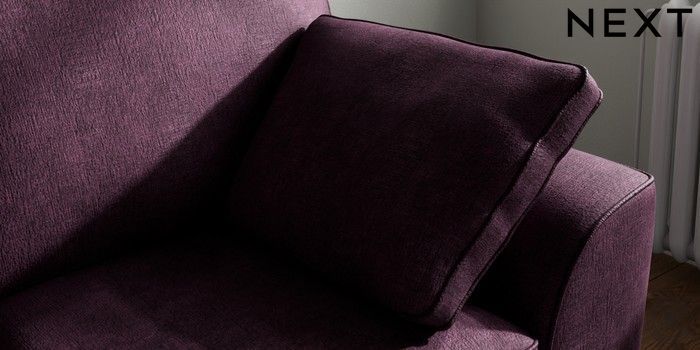 7.2.10 Stamford 2 Seater Small Sofa Plush Chenille Dark Plum Purple Large Square Angle - Brushed Brass | Made Click here to use our website with more accessibility support, for example screen readers