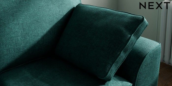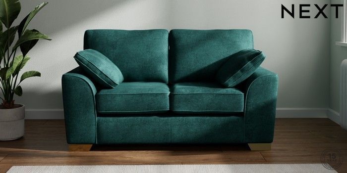 7.2.10 Stamford 2 Seater Small Sofa Plush Chenille Dark Teal Green Large Square Angle - Brushed Brass | Made Click here to use our website with more accessibility support, for example screen readers