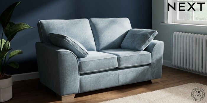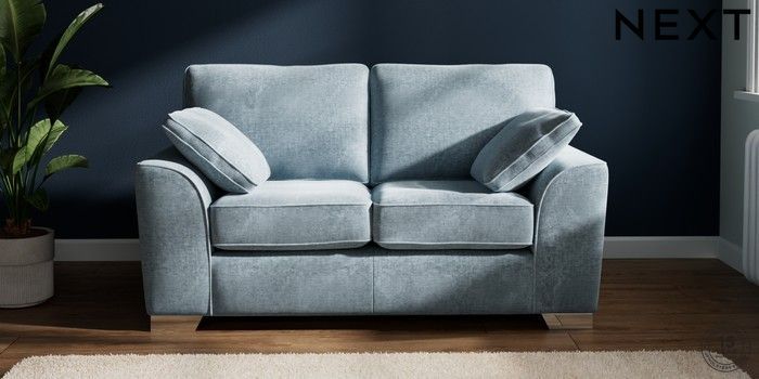 7.2.10 Stamford 2 Seater Small Sofa Plush Chenille Light Blue Large Square Angle - Chrome Metal | Made Click here to use our website with more accessibility support, for example screen readers
