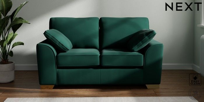 7.2.10 Stamford 2 Seater Small Sofa Plush Velvet Easy Clean Bottle Green Large Square Angle - Brushed Brass | Made Click here to use our website with more accessibility support, for example screen readers