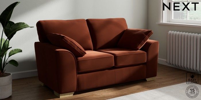 7.2.10 Stamford 2 Seater Small Sofa Plush Velvet Easy Clean Ginger Orange Large Square Angle - Light | Made Click here to use our website with more accessibility support, for example screen readers