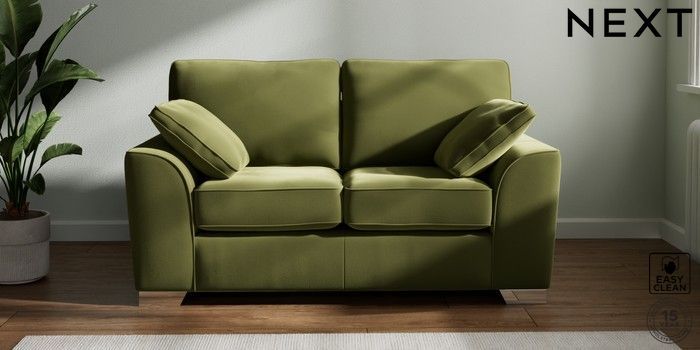 7.2.10 Stamford 2 Seater Small Sofa Plush Velvet Easy Clean Mid Olive Green Large Square Angle - Chrome Metal | Made Click here to use our website with more accessibility support, for example screen readers