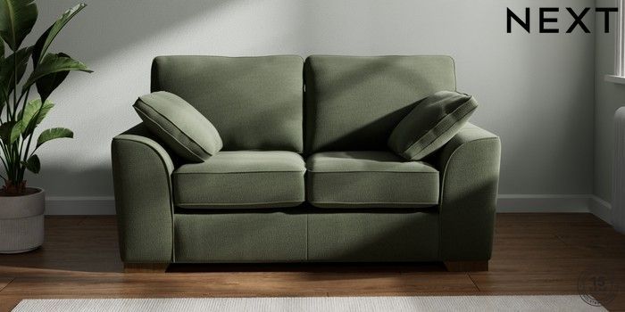 7.2.10 Stamford 2 Seater Small Sofa Relaxed Linen Look Dark Green Large Square Angle - Mid | Made Click here to use our website with more accessibility support, for example screen readers