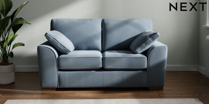 7.2.10 Stamford 2 Seater Small Sofa Relaxed Linen Look Mid Blue Large Square Angle - Mid | Made Click here to use our website with more accessibility support, for example screen readers