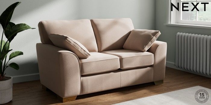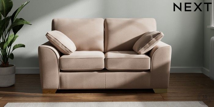 7.2.10 Stamford 2 Seater Small Sofa Relaxed Linen Look Mid Natural Large Square Angle - Brushed Brass | Made Click here to use our website with more accessibility support, for example screen readers