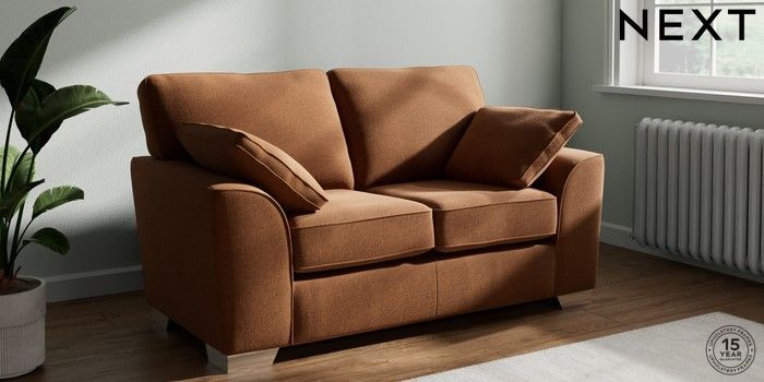 7.2.10 Stamford 2 Seater Small Sofa Ripple Chenille Mid Rust Brown Large Square Angle - Chrome Metal | Made Click here to use our website with more accessibility support, for example screen readers