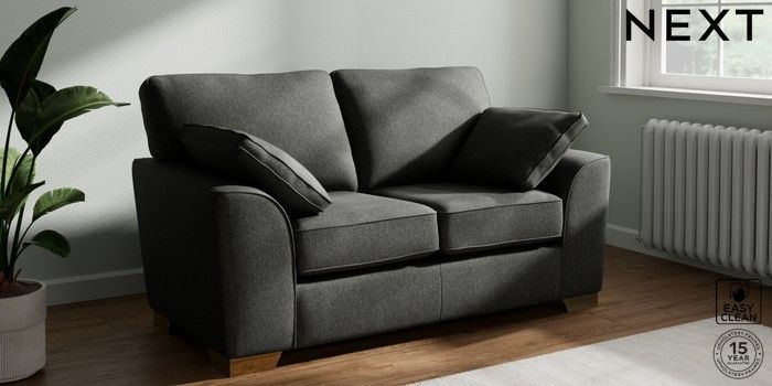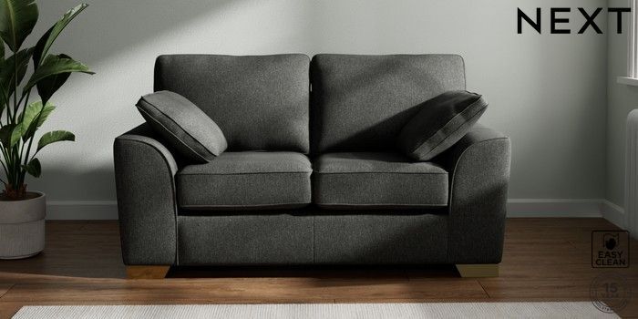7.2.10 Stamford 2 Seater Small Sofa Tweedy Blend Easy Clean Charcoal Grey Large Square Angle - Brushed Brass | Made Click here to use our website with more accessibility support, for example screen readers