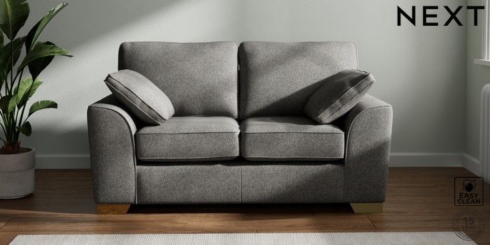 7.2.10 Stamford 2 Seater Small Sofa Tweedy Blend Easy Clean Dark Grey Large Square Angle - Brushed Brass | Made Click here to use our website with more accessibility support, for example screen readers
