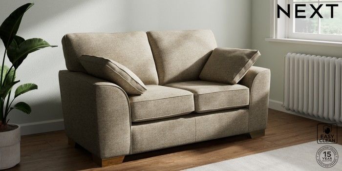 7.2.10 Stamford 2 Seater Small Sofa Woven Chenille Easy Clean Mid Natural Large Square Angle - Brushed Brass | Made Click here to use our website with more accessibility support, for example screen readers