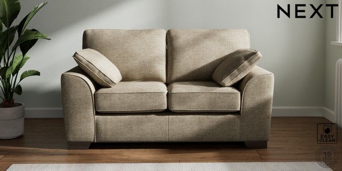 7.2.10 Stamford 2 Seater Small Sofa Woven Chenille Easy Clean Mid Natural Large Square Angle - Gunmetal | Made Click here to use our website with more accessibility support, for example screen readers