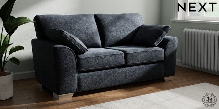 7.2.10 Stamford 2 Seater Sofa Boucle Chenille Dark Slate Blue Large Square Angle - Chrome Metal | Made Click here to use our website with more accessibility support, for example screen readers