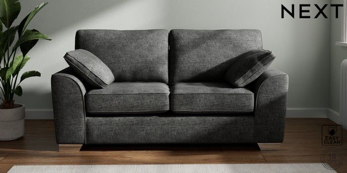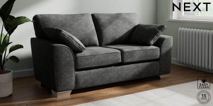7.2.10 Stamford 2 Seater Sofa Boucle Weave Easy Clean Charcoal Grey Large Square Angle - Chrome Metal | Made Click here to use our website with more accessibility support, for example screen readers