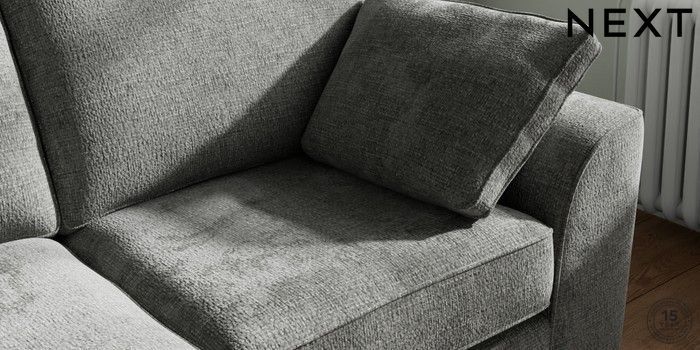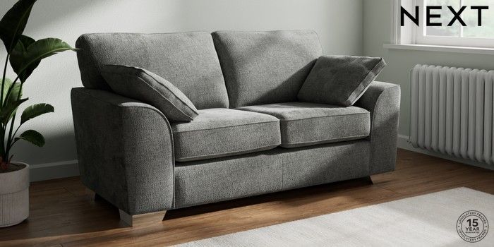 7.2.10 Stamford 2 Seater Sofa Chunky Chenille Dark Grey Large Square Angle - Chrome Metal | Made Click here to use our website with more accessibility support, for example screen readers