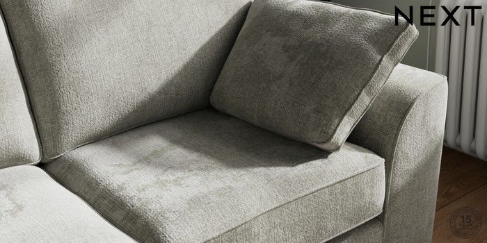 7.2.10 Stamford 2 Seater Sofa Chunky Chenille Light Grey Large Square Angle - Brushed Brass | Made Click here to use our website with more accessibility support, for example screen readers