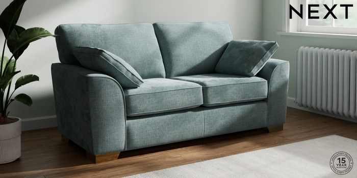 7.2.10 Stamford 2 Seater Sofa Chunky Chenille Light Teal Green Large Square Angle - Brushed Brass | Made Click here to use our website with more accessibility support, for example screen readers