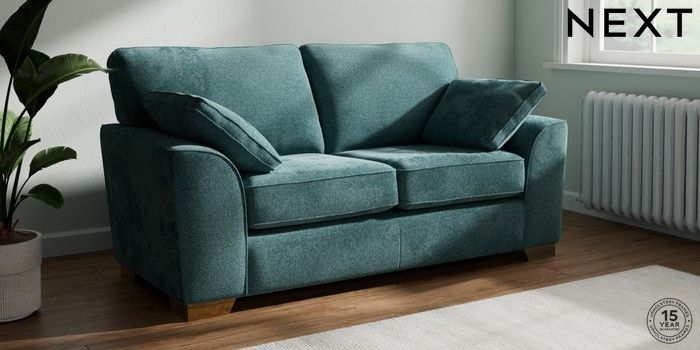 7.2.10 Stamford 2 Seater Sofa Chunky Chenille Mid Teal Green Large Square Angle - Brushed Brass | Made Click here to use our website with more accessibility support, for example screen readers