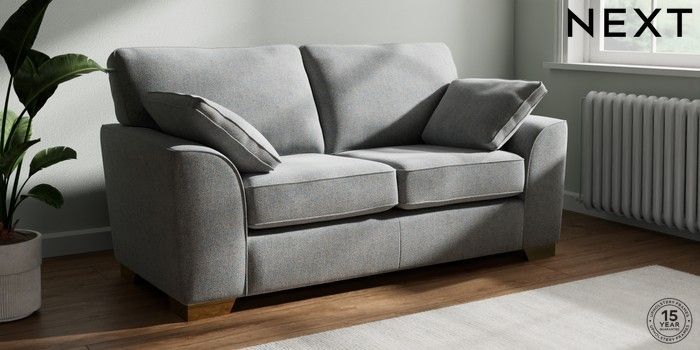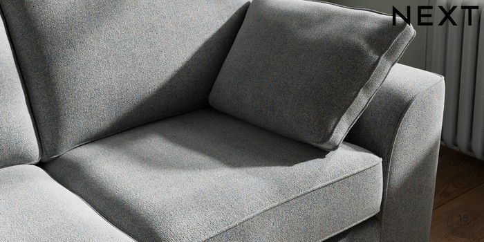 7.2.10 Stamford 2 Seater Sofa Chunky Marl Mid Grey Large Square Angle - Brushed Brass | Made Click here to use our website with more accessibility support, for example screen readers