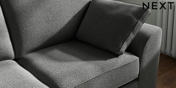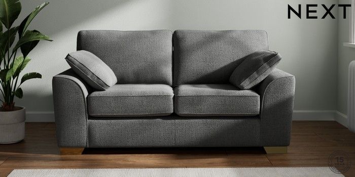 7.2.10 Stamford 2 Seater Sofa Chunky Texture Dark Grey Large Square Angle - Brushed Brass | Made Click here to use our website with more accessibility support, for example screen readers