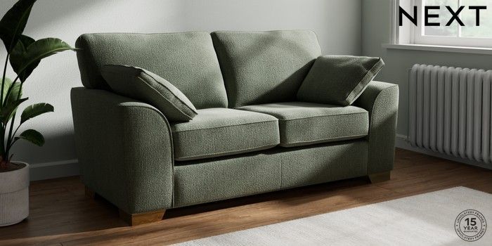 7.2.10 Stamford 2 Seater Sofa Chunky Texture Mid Forest Green Large Square Angle - Brushed Brass | Made Click here to use our website with more accessibility support, for example screen readers