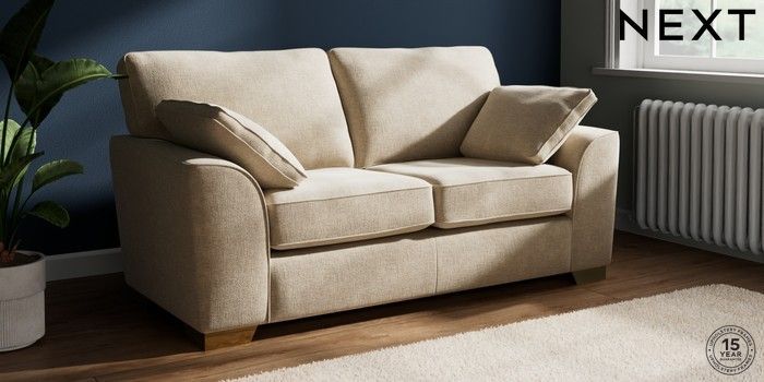 7.2.10 Stamford 2 Seater Sofa Chunky Weave Cream Large Square Angle - Brushed Brass | Made Click here to use our website with more accessibility support, for example screen readers