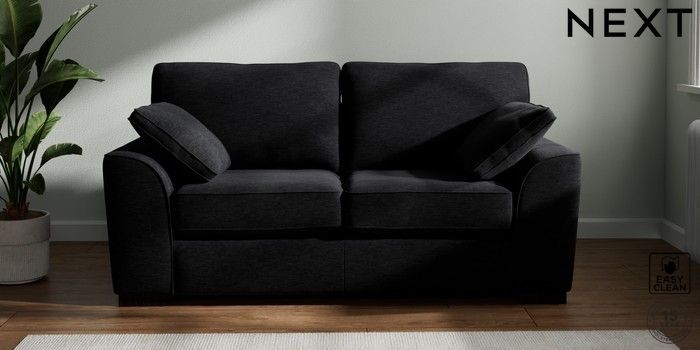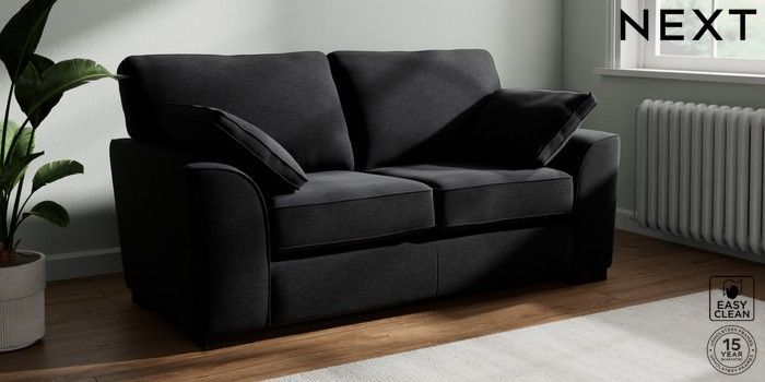 7.2.10 Stamford 2 Seater Sofa Fine Chenille Easy Clean Black Large Square Angle - Dark | Made Click here to use our website with more accessibility support, for example screen readers