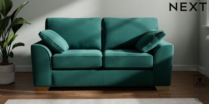 7.2.10 Stamford 2 Seater Sofa Fine Chenille Easy Clean Dark Juniper Green Large Square Angle - Brushed Brass | Made Click here to use our website with more accessibility support, for example screen readers