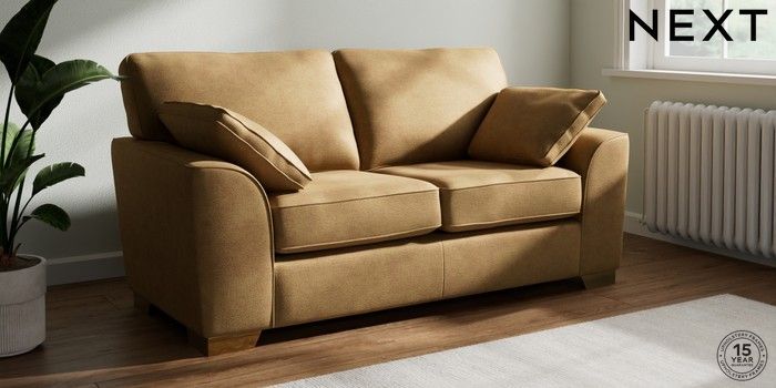 7.2.10 Stamford 2 Seater Sofa Luxe Chenille Honey Yellow Large Square Angle - Brushed Brass | Made Click here to use our website with more accessibility support, for example screen readers